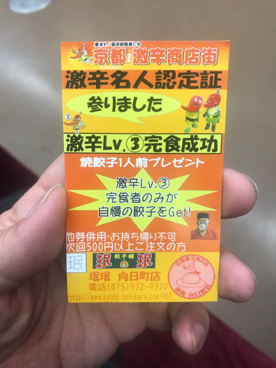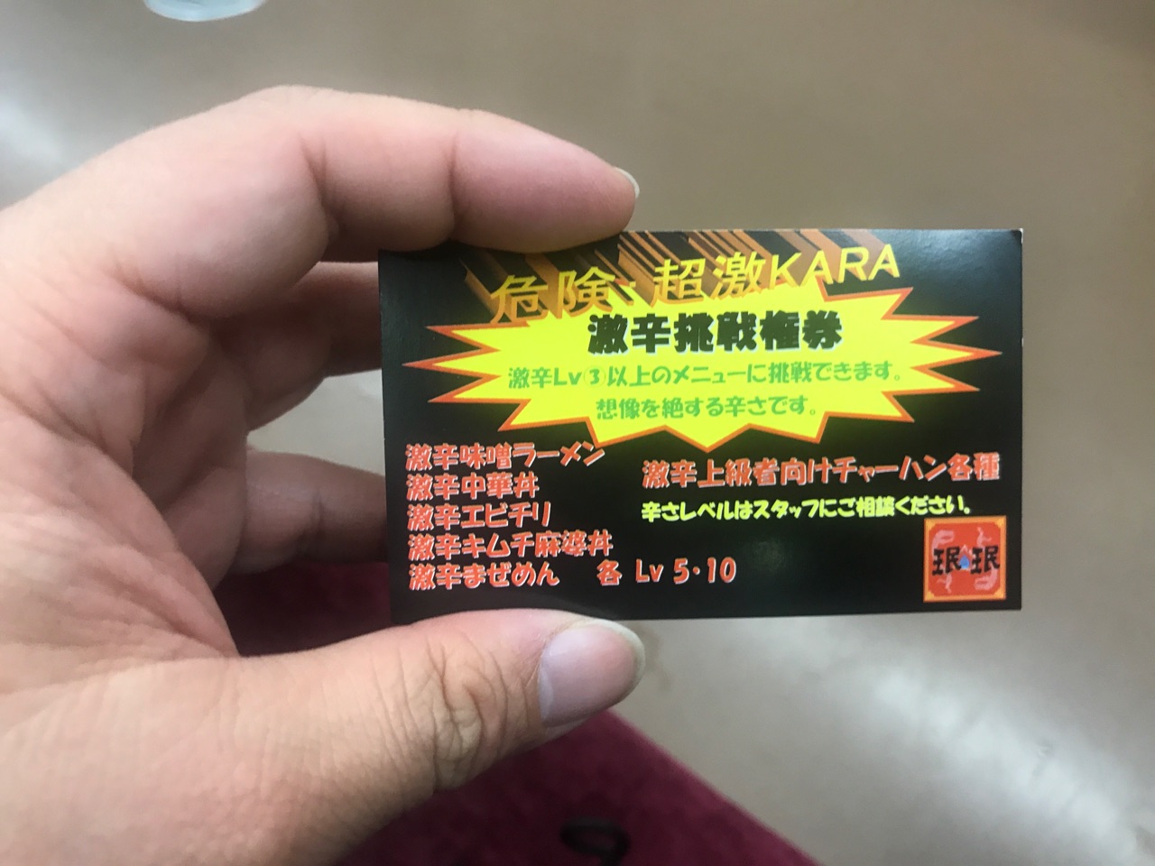 上級レベルの激辛料理の挑戦権付餃子無料券でした。
