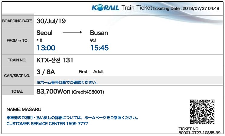 KTX¤ÎÀÚÉä¤ÏKORAIL¡Ê´Ú¹ñÅ´Æ»¸ø¼Ò¡Ë¤Î¥µ¥¤¥È¤«¤éÇ㤨¤Þ¤¹¡£