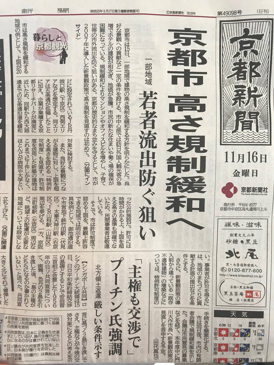 16Æü¤ÎµþÅÔ¿·Ê¹¤Ë¤è¤ë¤È¡¢µþÅÔ»Ô¤¬»ÔÆâ¤Î°ìÉôÃϰè¤Ç·úʪ¤Î¹â¤µµ¬À©¤ò´ËϤ¹¤ëÊý¿Ë¤Ç¤¢¤ë¤È¸À¤¦¡£Â³¤¤òÆÉ¤à